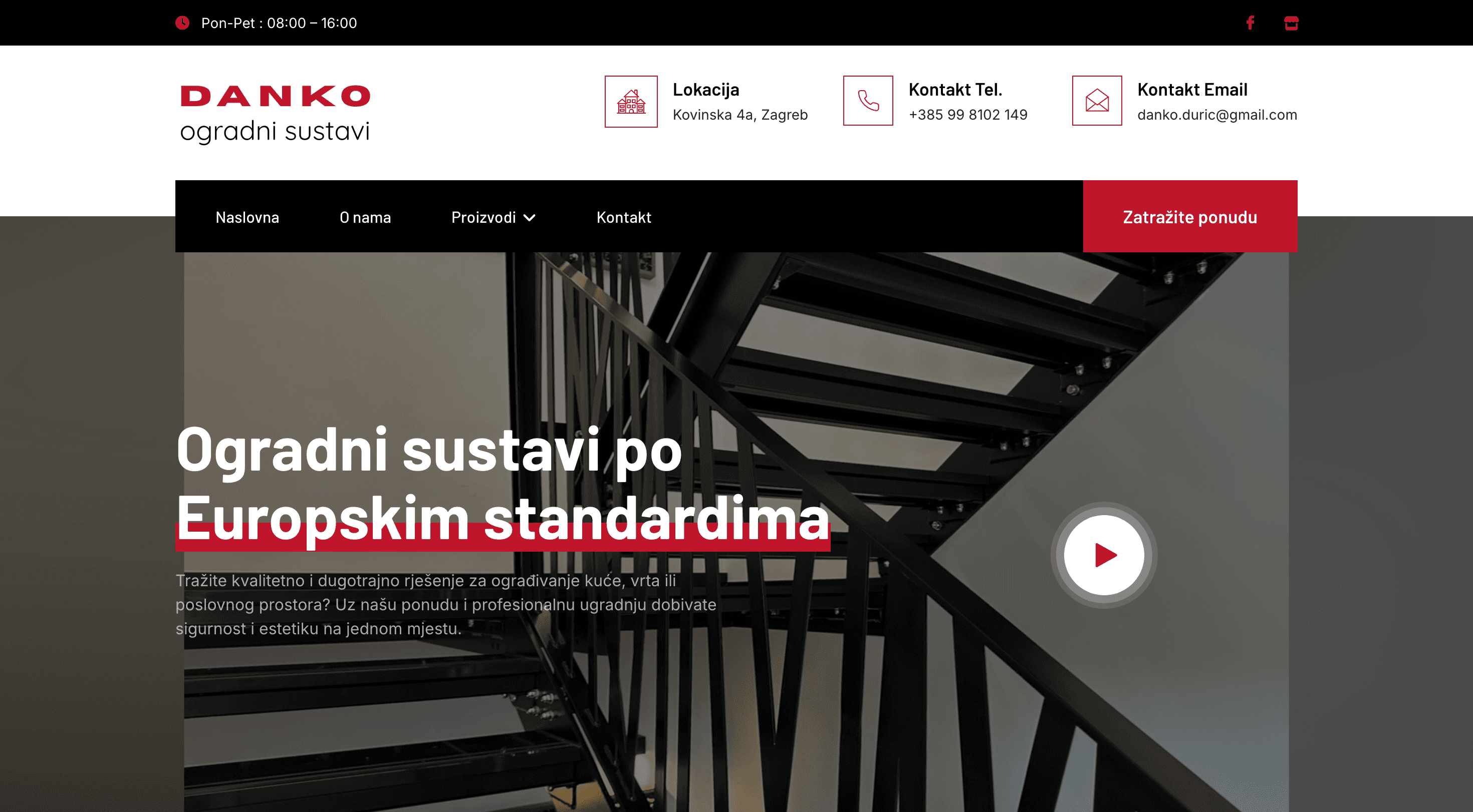Danko je trebao web stranicu koja će profesionalno predstaviti ponudu i olakšati kontakt s potencijalnim klijentima. Ideja je bila pojednostaviti strukturu stranice i jasno istaknuti vrste ograda, njihove prednosti i mogućnost dogovora ponude.