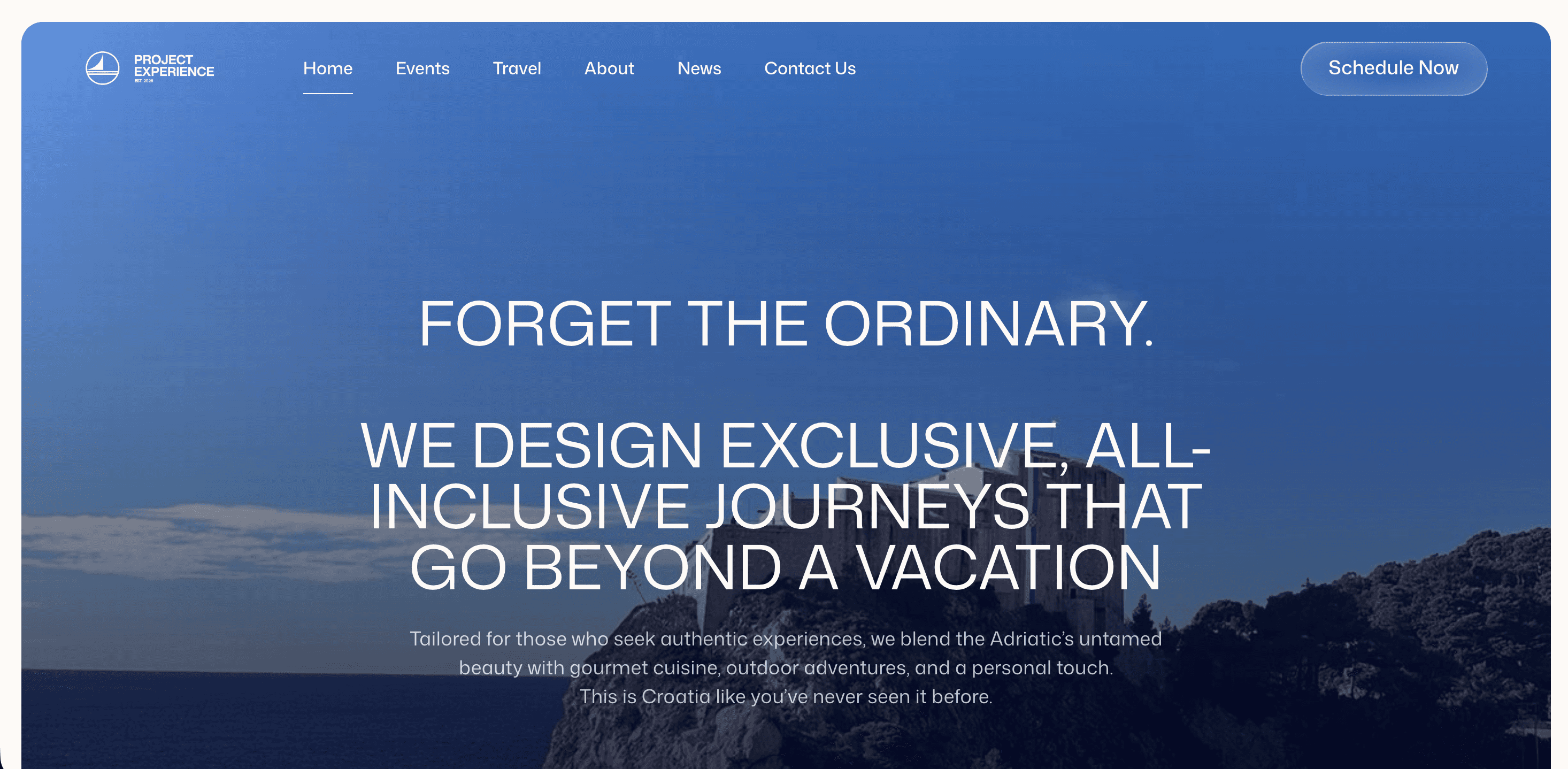 Za Project Experience izradio sam web stranicu za DMC agenciju specijaliziranu za organizaciju putovanja i iskustava u Hrvatskoj. Fokus je bio na prezentaciji usluga i poticanju korisnika na slanje upita.