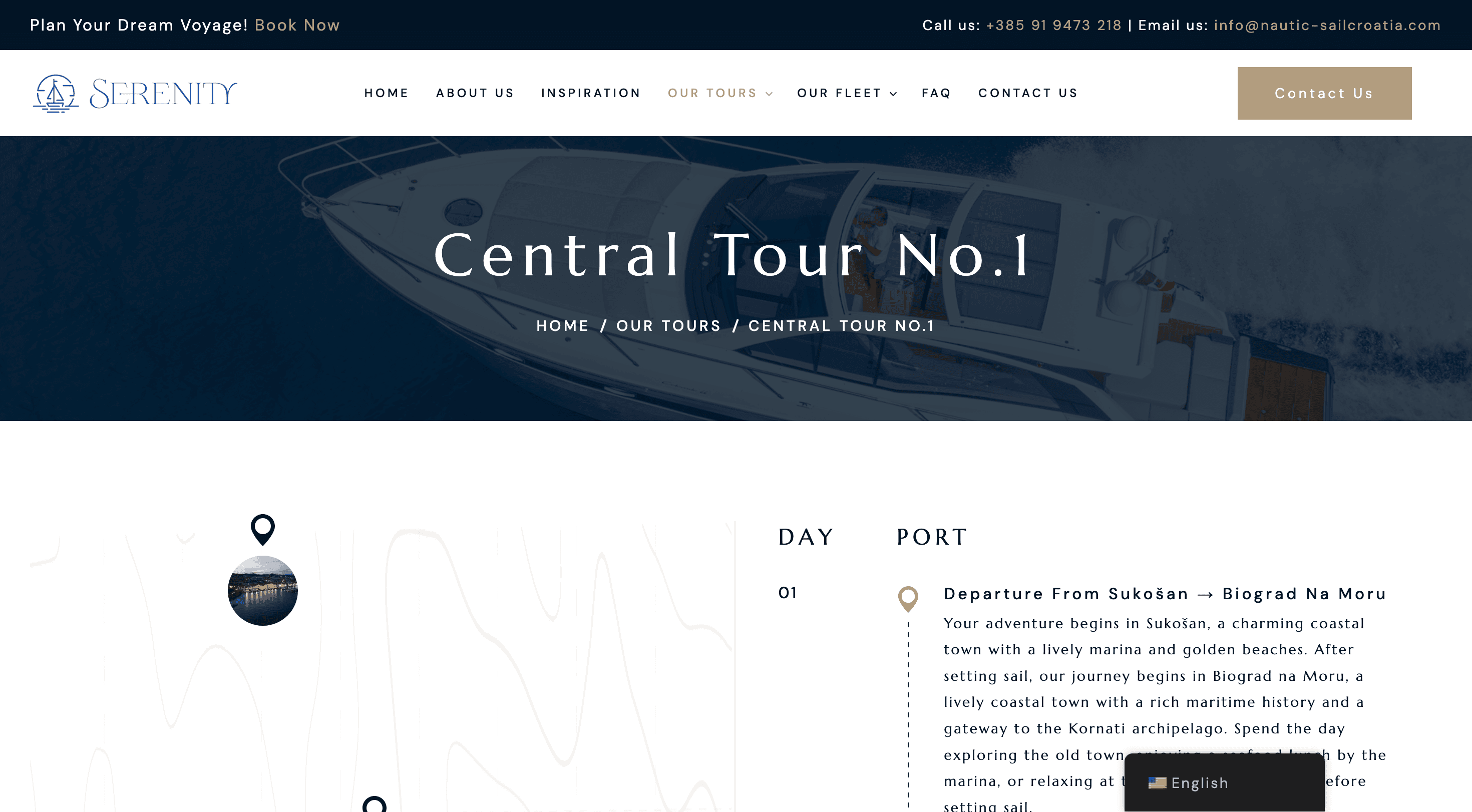 Za Serenity izradio sam web stranicu namijenjenu predstavljanju usluge najma jedrenja u Hrvatskoj. Glavni cilj stranice je potaknuti korisnike da se jave s upitom i započnu planiranje svog jedriličarskog iskustva.